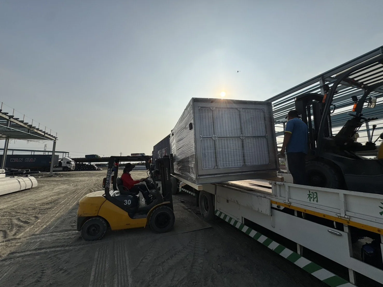 🏗 一路作業到晚間的堆高機卸貨團隊
